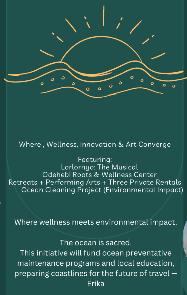 Proceeds from the musical helps with operations at the center, which offers performing arts, three exclusive and private short- and long-term rentals with private beach access, pavilion rental and curated wellness experiences rooted in African heritage and wellness traditions.